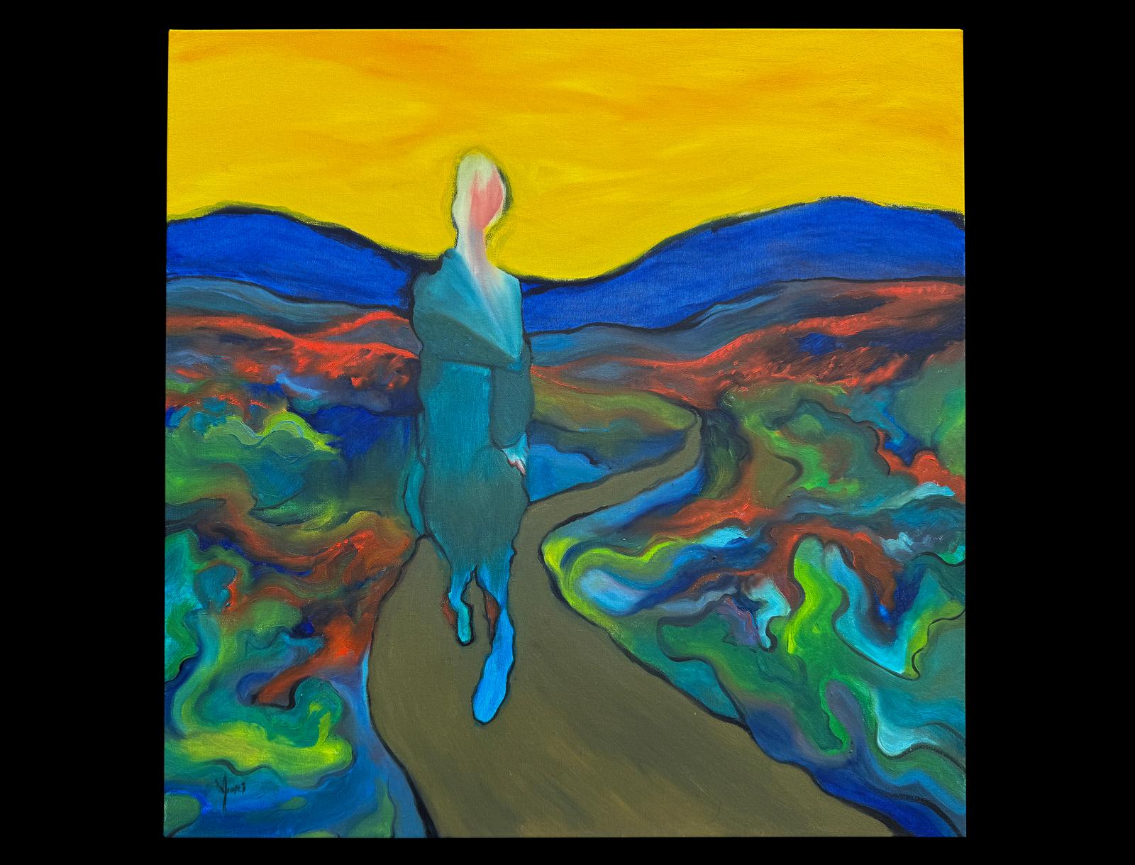De Wandelende Reus / A Giant Walking, 2024, acrylics on canvas, 100x100cm